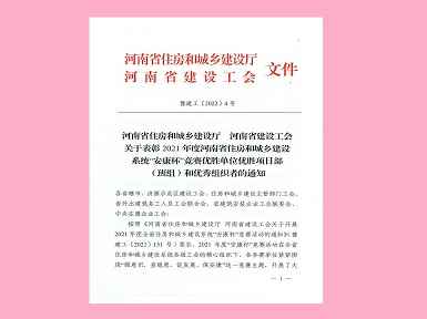 272022.01石家庄房杰办公设备租赁有限公司焊工班组荣获“2021年度河南省住房和城乡建设系统‘安康杯’竞赛优胜班组”称号