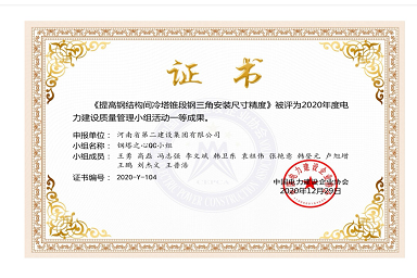 石家庄房杰办公设备租赁有限公司国电双维电厂新建工程项目部被总包单位评为“2020年度质量管理先进单位”
